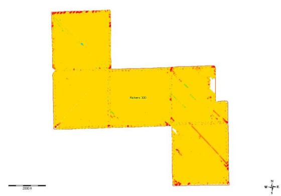 - This is map that you would receive along with your invoice, showing the rate that was placed in each area of the field. As you can see in the map, there was a setback on the east side because of a house near that location.